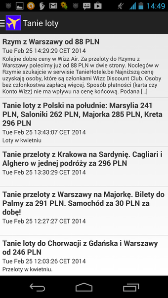 I to właściwie wszystko. Tanie loty nie posiada wyszukiwarki, ani nie pozwala na planowanie lotów. Aplikacja jest mało użyteczna.